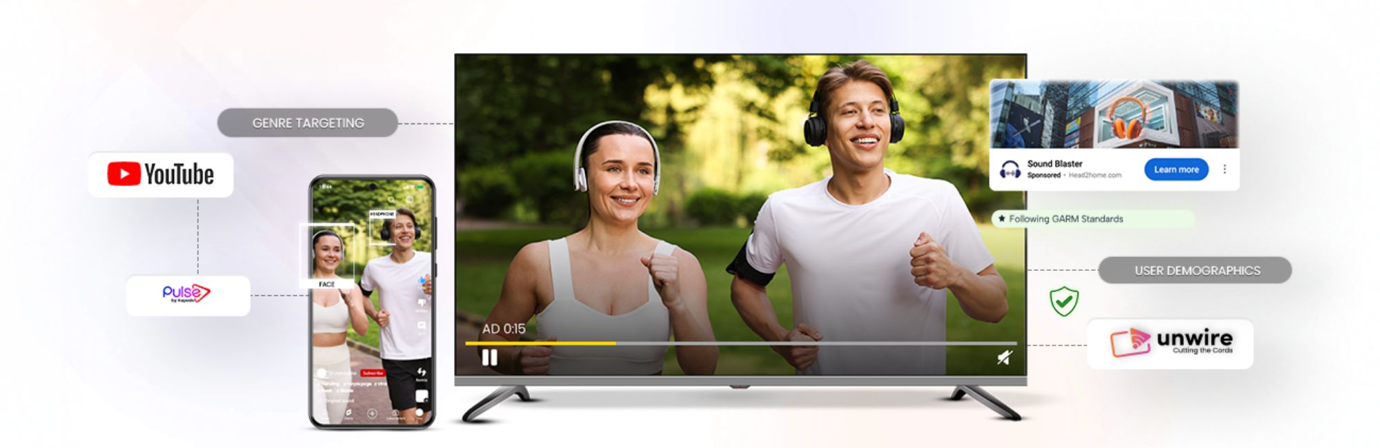 YouTube-based awareness runs alongside CTV. Pulse by Xapads is an AI-powered contextual targeting engine for YouTube that places ads in contextually relevant video moments with full GARM-compliant brand safety. Pulse analyzes content signals including on-screen text, audio, sentiment, brands, and places to place ads in relevant environments without relying on audience cookie tracking.